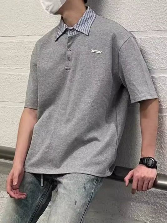 Men's Layered Striped Collar Short Sleeve Polo