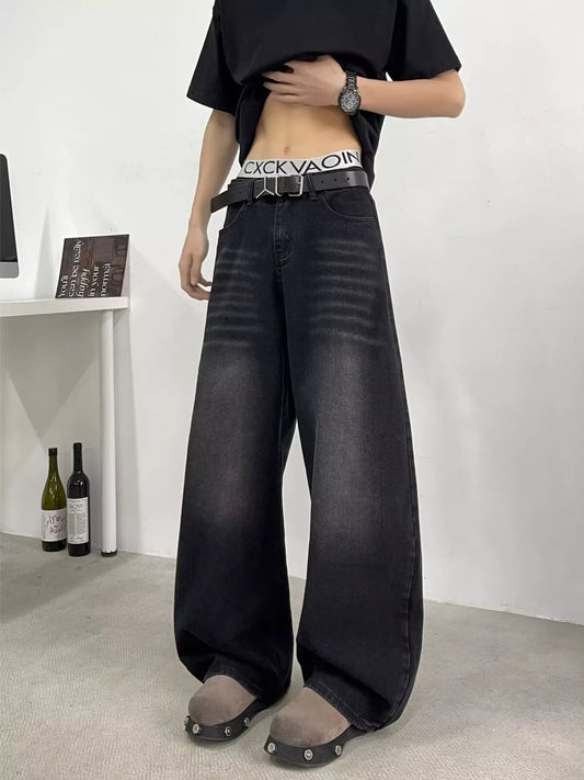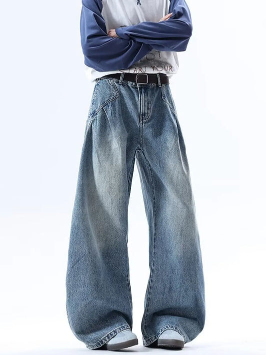 Men's Full Size Vintage Wash Wide Leg Jeans Plus Size