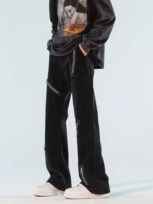 Men's Full Size Zipper Accent Wide Leg Jeans Plus Size