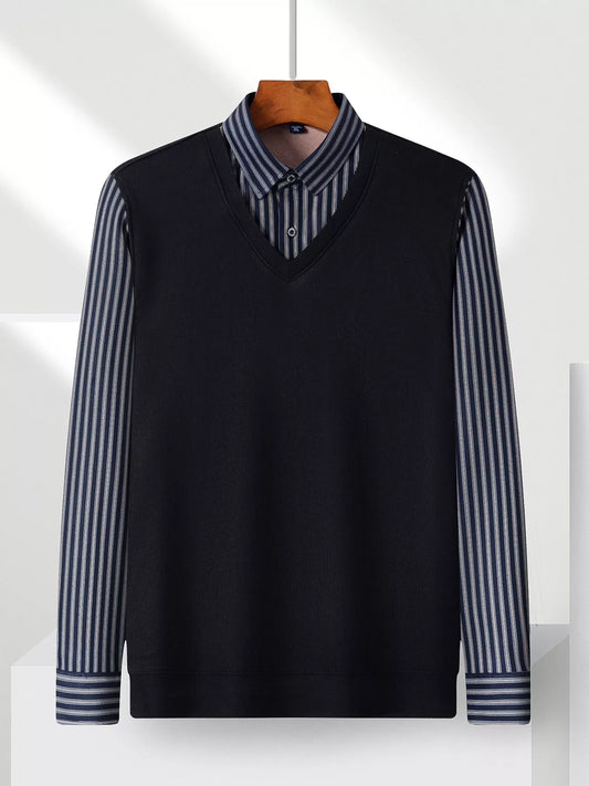 Men's Plus Size Striped Long Sleeve Fake Two-Piece Knit Top
