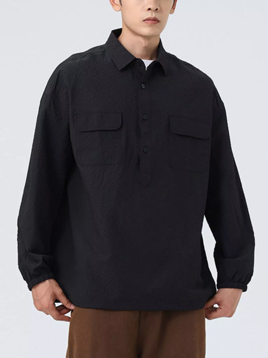 Men's Plus Size Casual Solid Color Long Sleeve Shirt