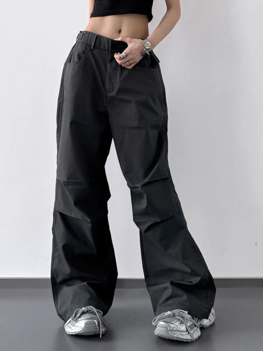 Stripe Button Pleated Drawstring Waist Casual Wide Leg Jeans