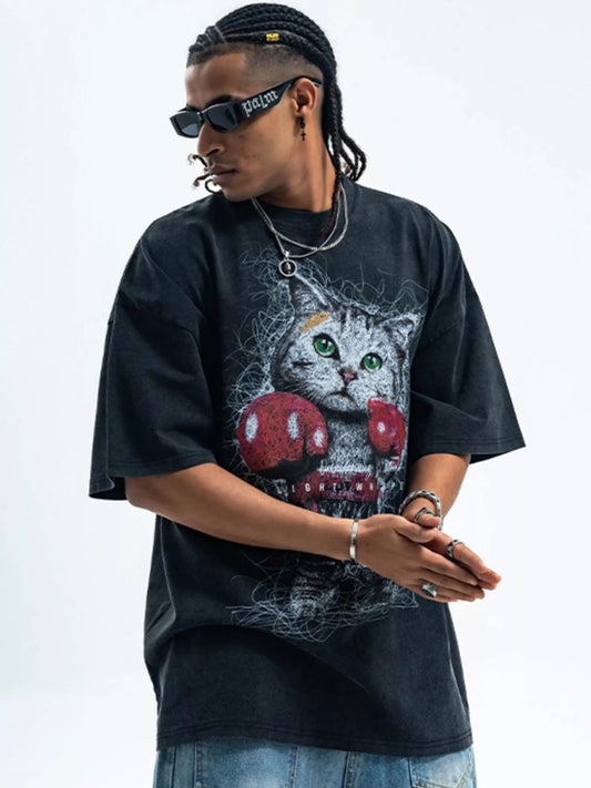Men's Cat Graphic Vintage Wash T-Shirt