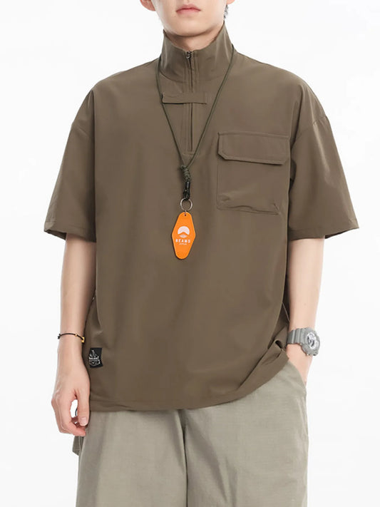 Men's Plus Size Half-Zip Half Sleeve Top